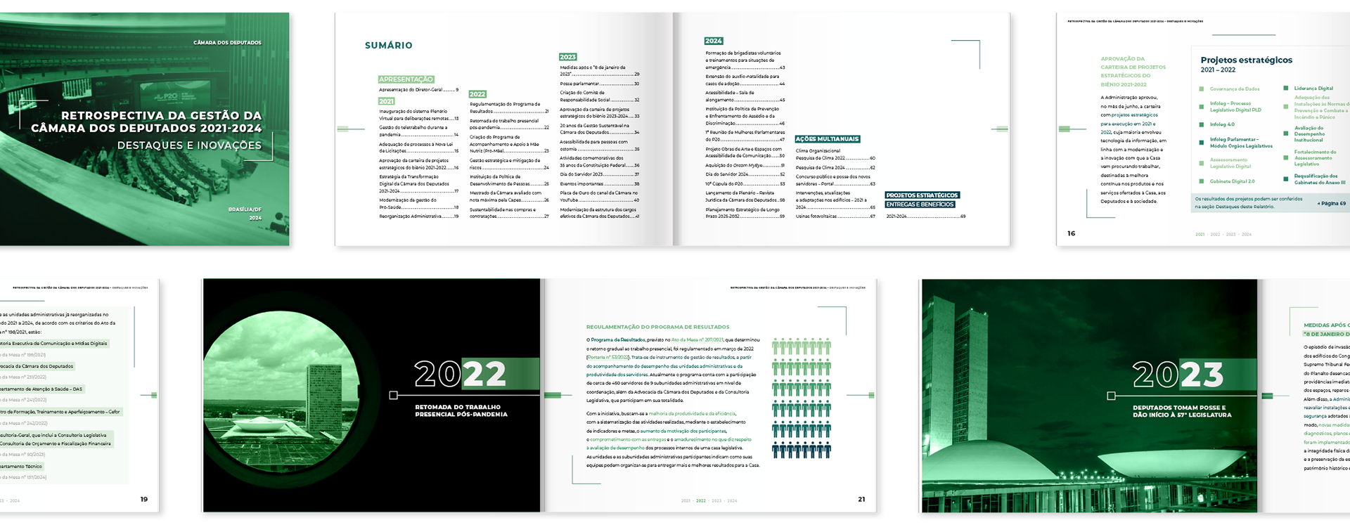 Projeto gráfico e diagramação de publicação institucional (76 páginas), com organização e hierarquização de conteúdos.